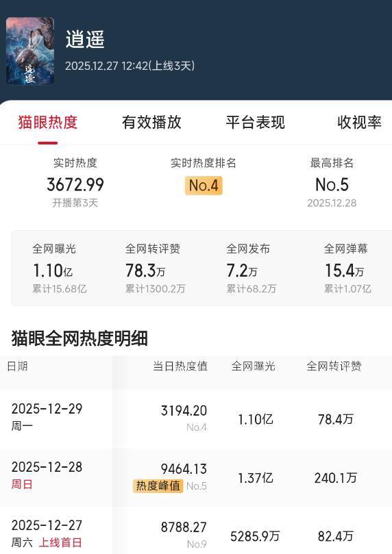 首播后该剧稳居同期段收视第一的位置,在网播平台站内热度也温和突破9000,看来年末压轴大剧出现了!