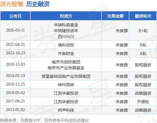 证券之星音信,左证天眼查APP于3月11日公布的信息整理,南京派光灵敏感知信息本领有限公司B+轮融资,融资额未清楚,参与投资的机构包括华瑞私募基金,中信建投本钱,四川兴川。